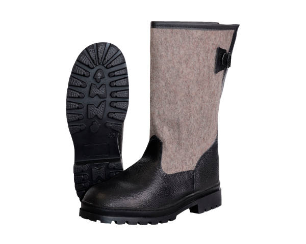 Союзка изготовлена из войлока, продублирована юфтью, голенище - войлок 5-6 мм.